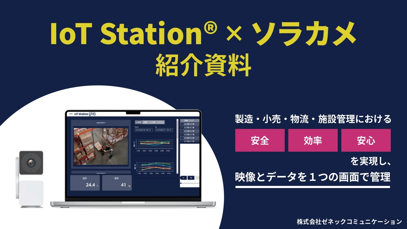 IoT Stationとソラカメの連携により、カメラ映像+センサーデータの“見える化”を同時に実現。生産・物流・建設・設備管理など、幅広いシーンで即日導入が可能です。資料カテゴリ:IoT Stationページ数:17ページ